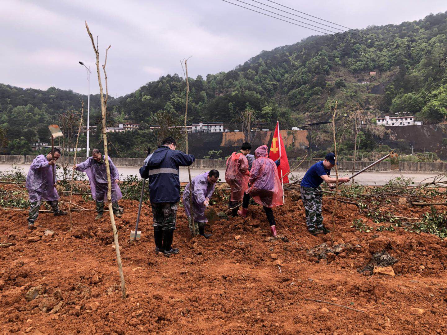 黨員們發(fā)揮先鋒帶頭作用,保證自身勞動進(jìn)度,同時協(xié)調(diào)人員,維持現(xiàn)場秩序及效率。植樹現(xiàn)場是一派緊張有序的勞動景象,參加植樹的干部職工個個熱情洋溢、干勁十足,有的運(yùn)樹苗,有的舞鋤頭,你追我趕,比干勁,比進(jìn)度,各個環(huán)節(jié)銜接有序,樣樣做得認(rèn)真到位,個個忙得滿頭大汗。到處都是忙碌的身影。