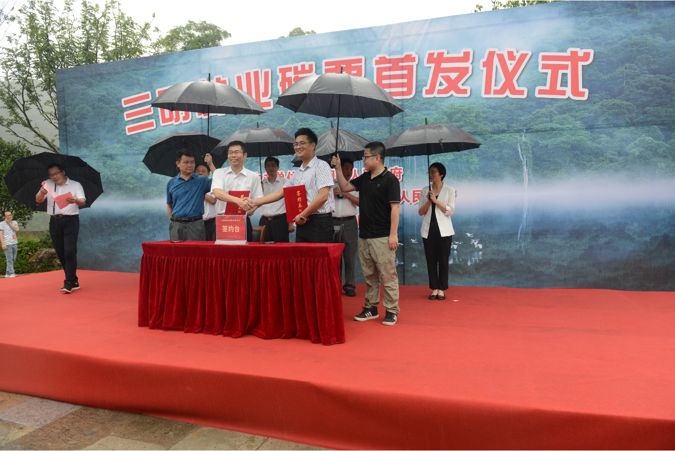 5月18日,全國首批三明林業(yè)碳票在將樂縣高唐鎮(zhèn)??诖逯鲿龀晒εe行首發(fā)儀式,完成林業(yè)碳票碳減量首單交易。公司收儲了首批三明林業(yè)碳票項目碳減排量18294噸二氧化碳當量,價值18.29萬元。