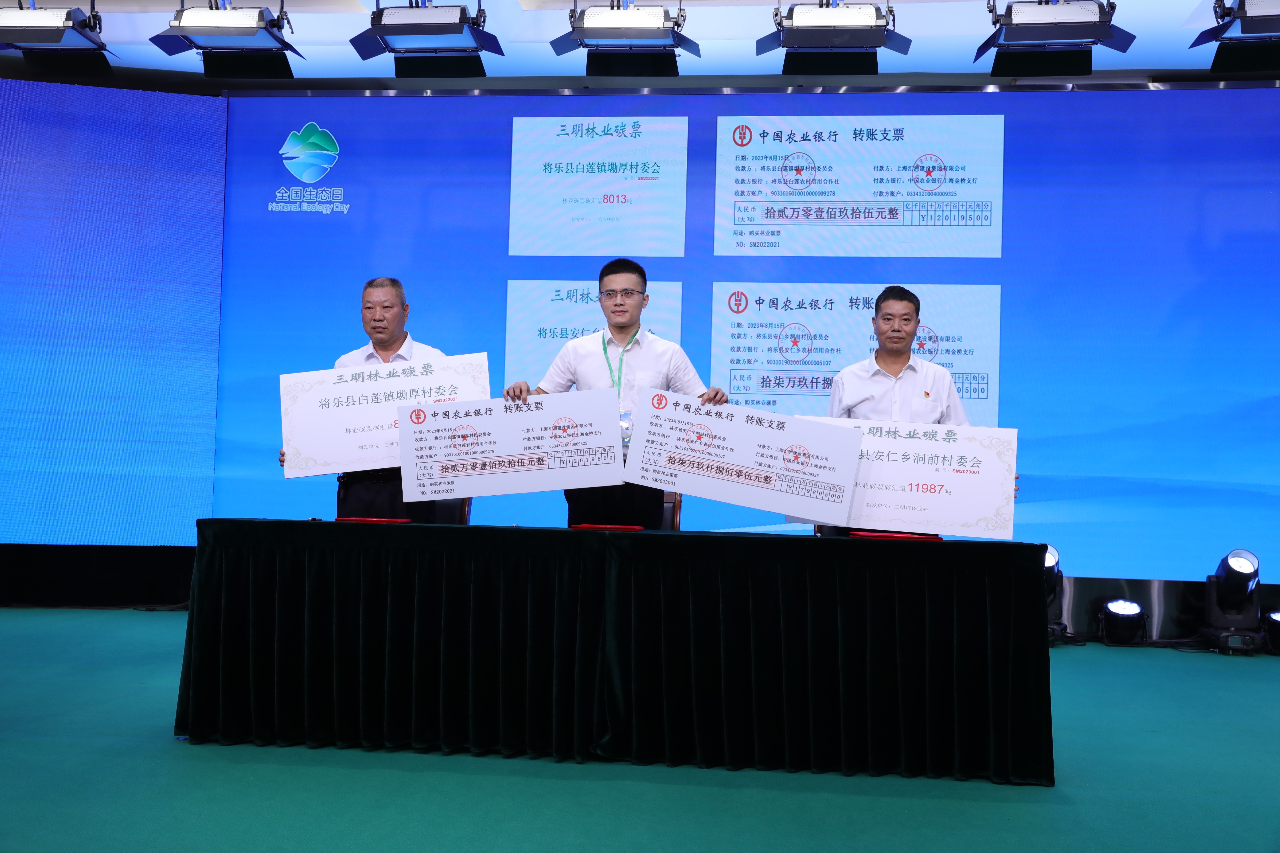 2023年8月15日全國生態(tài)日福建活動在將樂縣??诖迮e行。福建金森引薦上海匯州建設(shè)集團有限公司購買將樂縣白蓮鎮(zhèn)墈厚村及安仁鄉(xiāng)洞前村共計2萬噸林業(yè)碳票,完成全國首次林業(yè)碳票的跨區(qū)域銷售。